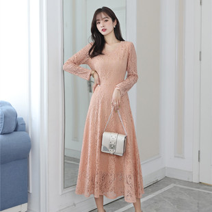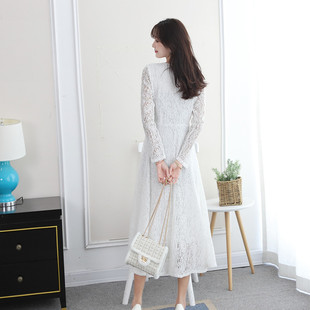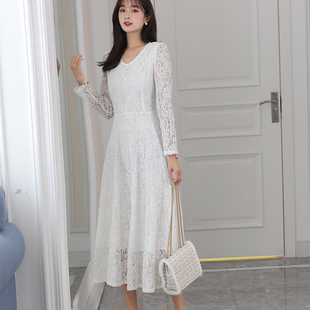 中长裙 高级感a字气质白色长袖 蕾丝连衣裙蕾丝春秋女2025法式 大码