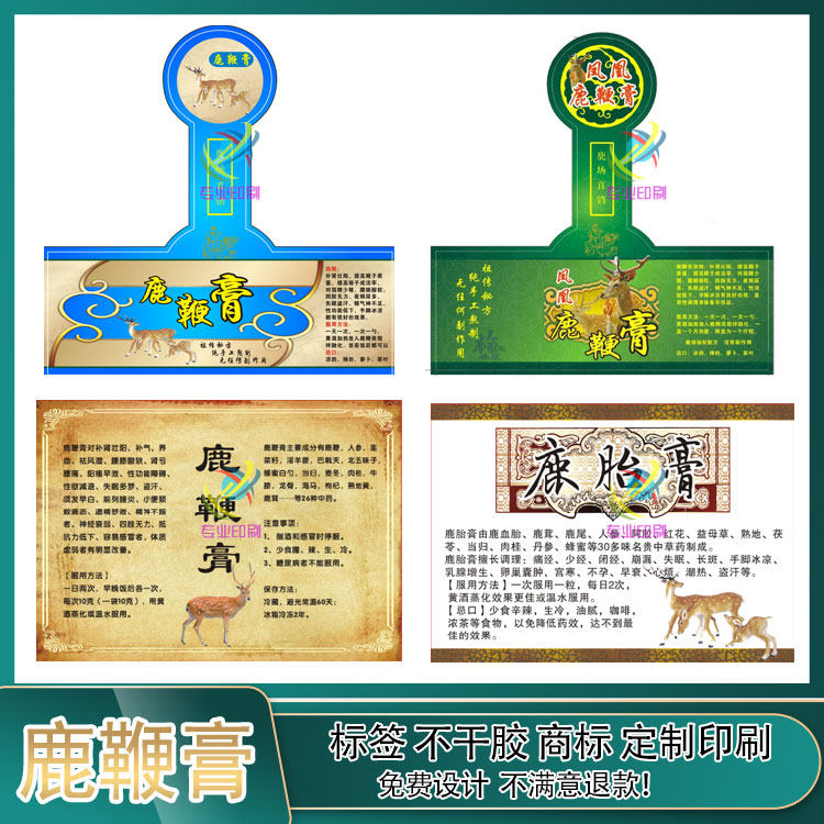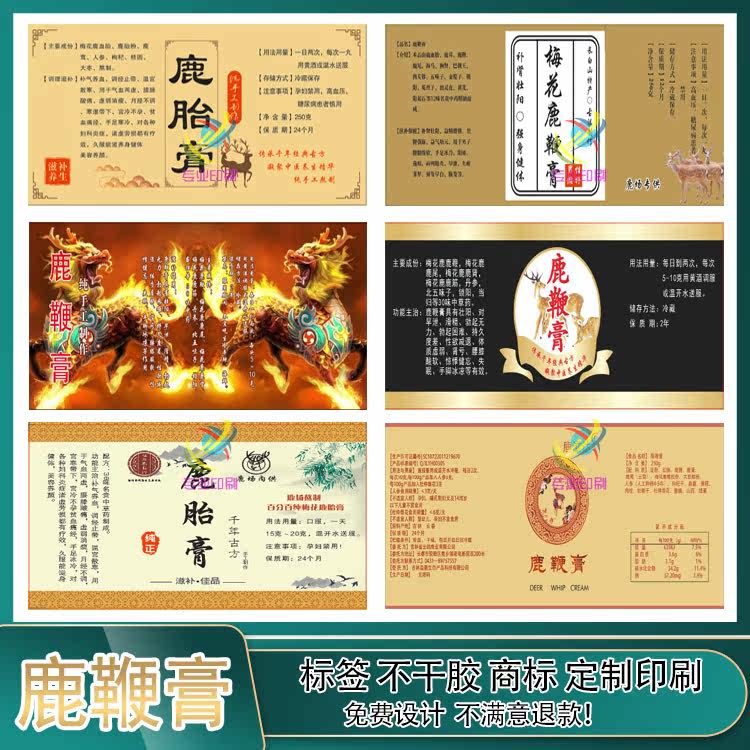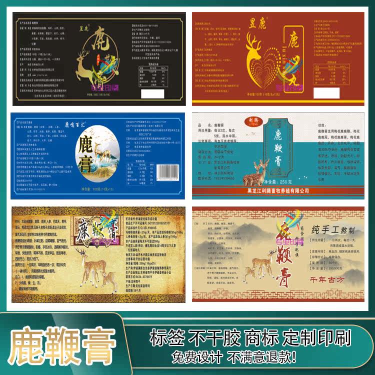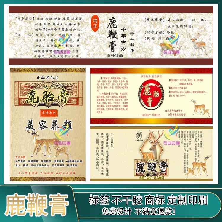 定制鹿鞭膏标签鹿心粉鹿胎膏鹿茸血酒不干胶鹿角帽粉商标设计印刷