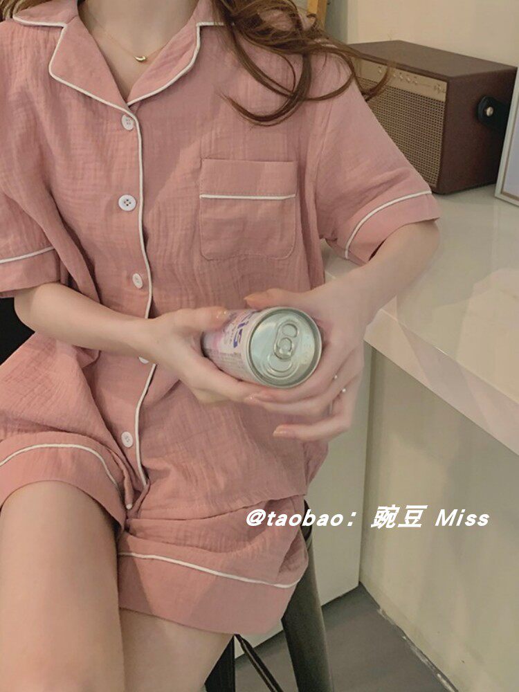 韩版 网红薄款 ins睡衣女夏天日系休闲简约短袖 套装 家居服 短裤 新款