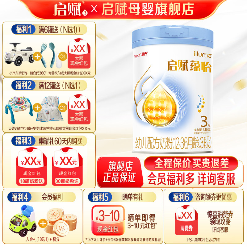 旗舰店 1罐装 蓝钻升级 惠氏启赋蕴怡3段7HMO婴幼儿奶粉三段810g