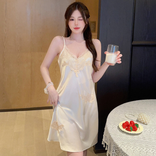 性感睡裙女士两件套装 春秋夏季 轻熟御姐冰丝睡袍吊带睡衣女款 长袖