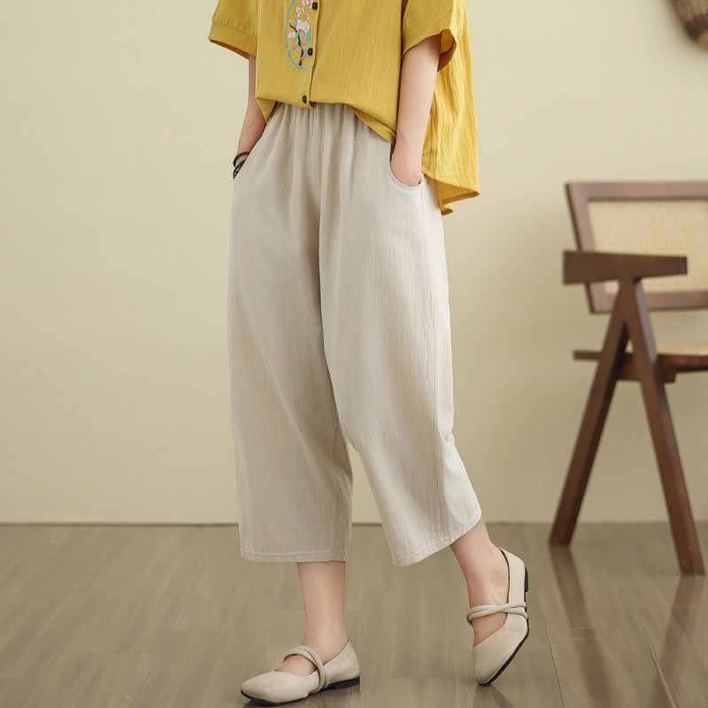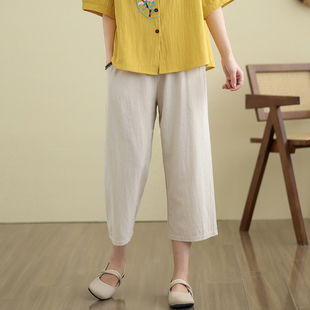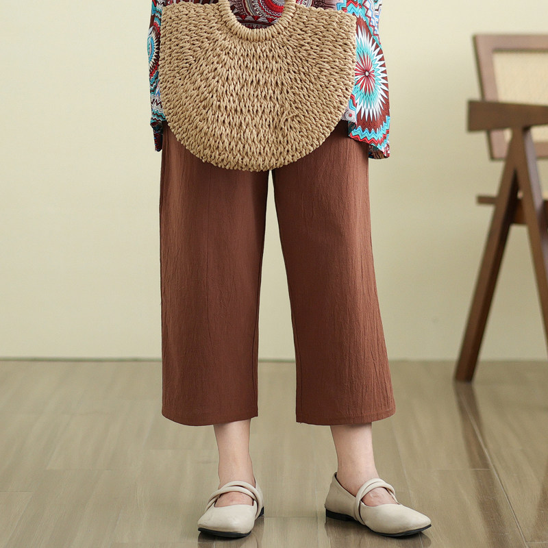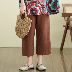 妈妈春秋新款 裤 休闲直筒阔腿棉麻八分裤 女装 宽松大码 中老年女装