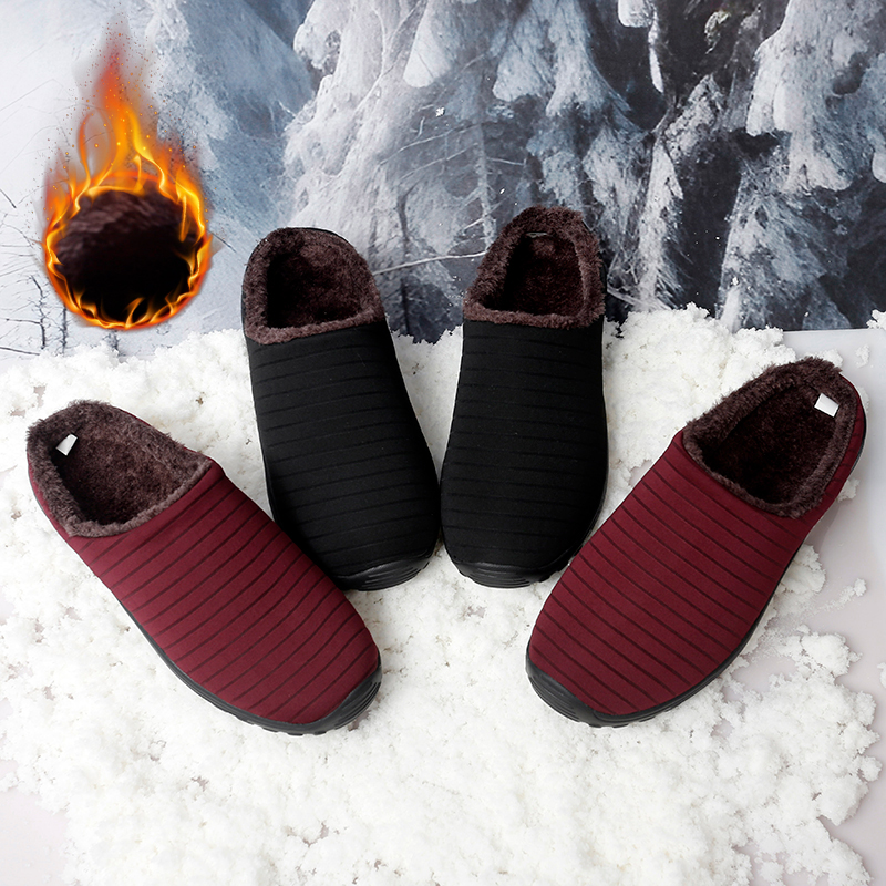 加绒保暖无后跟棉鞋 中老年人室内专用防滑半拖鞋 女冬季 老人棉拖鞋