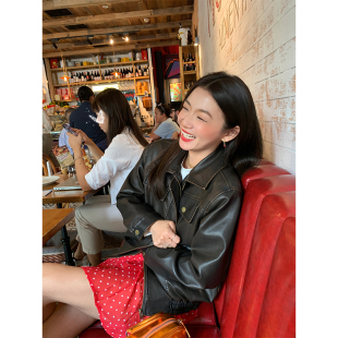短款 落落狷介 咖啡色小个子皮夹克外套秋冬款 2025新款 仿皮衣女款