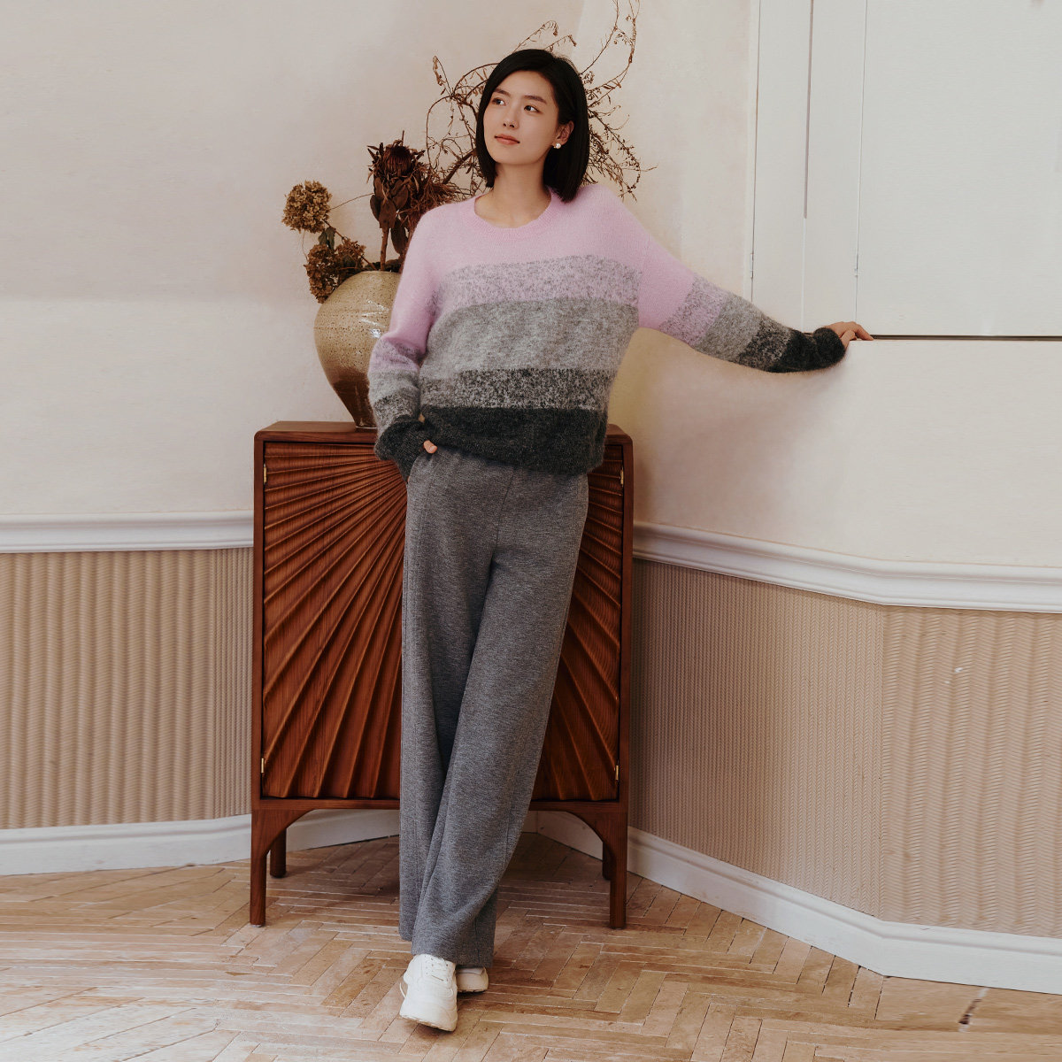 女 简约舒适休闲百搭宽松直筒裤 8E41K3104 专柜新款 歌蒂诗冬季