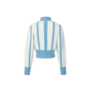 lefame拉飞姆秋季 复古百搭蓝白卷草纹针织外套