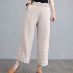 亚麻直筒裤 九分裤 2026 女高腰垂感春秋宽松显瘦棉麻女裤 亚麻阔腿裤