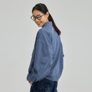 栾树果 开衫 新款 短款 外套女 牛仔棉复古休闲设计感长袖 无色无味