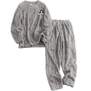 家居服套装 JoyceBra 珊瑚绒条纹圆领睡衣女休闲宽松长袖 新款 冬季