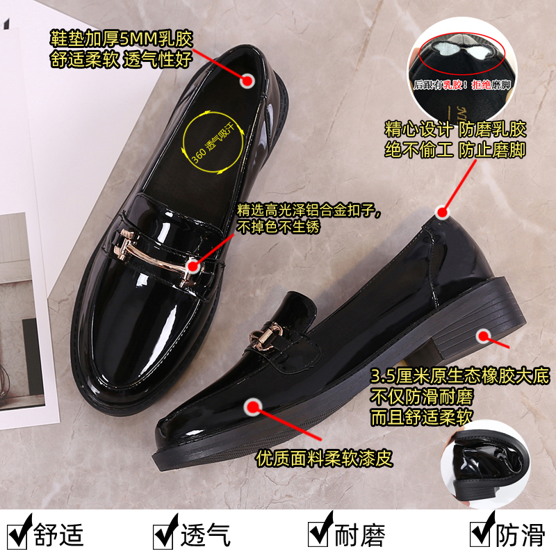 子平底百搭黑色豆豆单鞋 软底小皮鞋 春秋英伦风鞋 女2025新款 乐福鞋