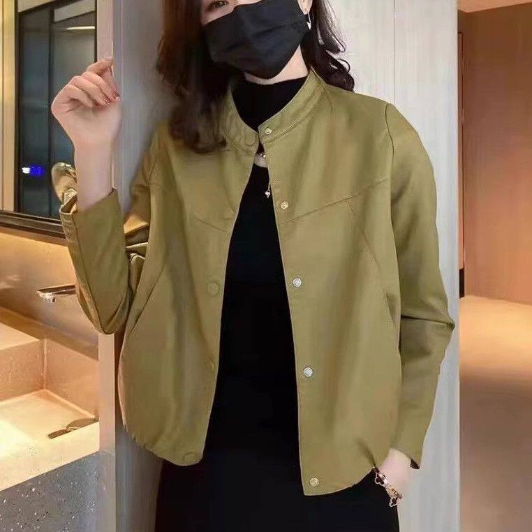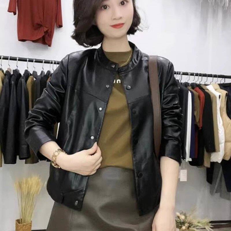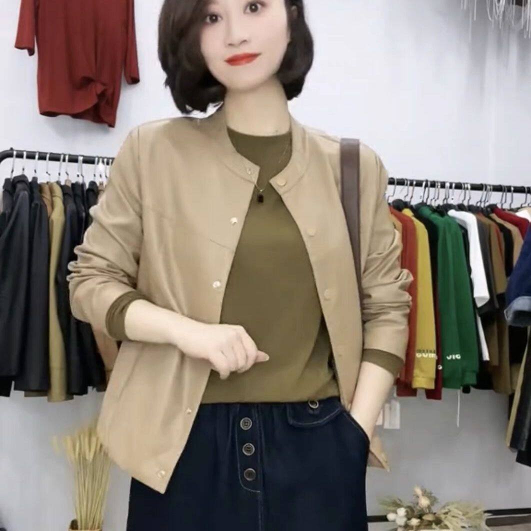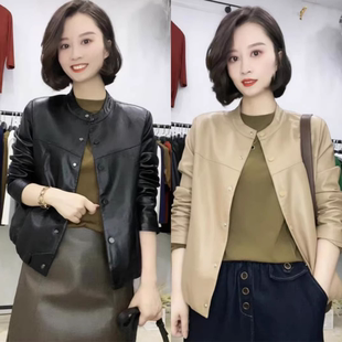 海宁皮衣女短款 女装 外套宽松中年妈妈装 春季 皮夹克 休闲大码 新款