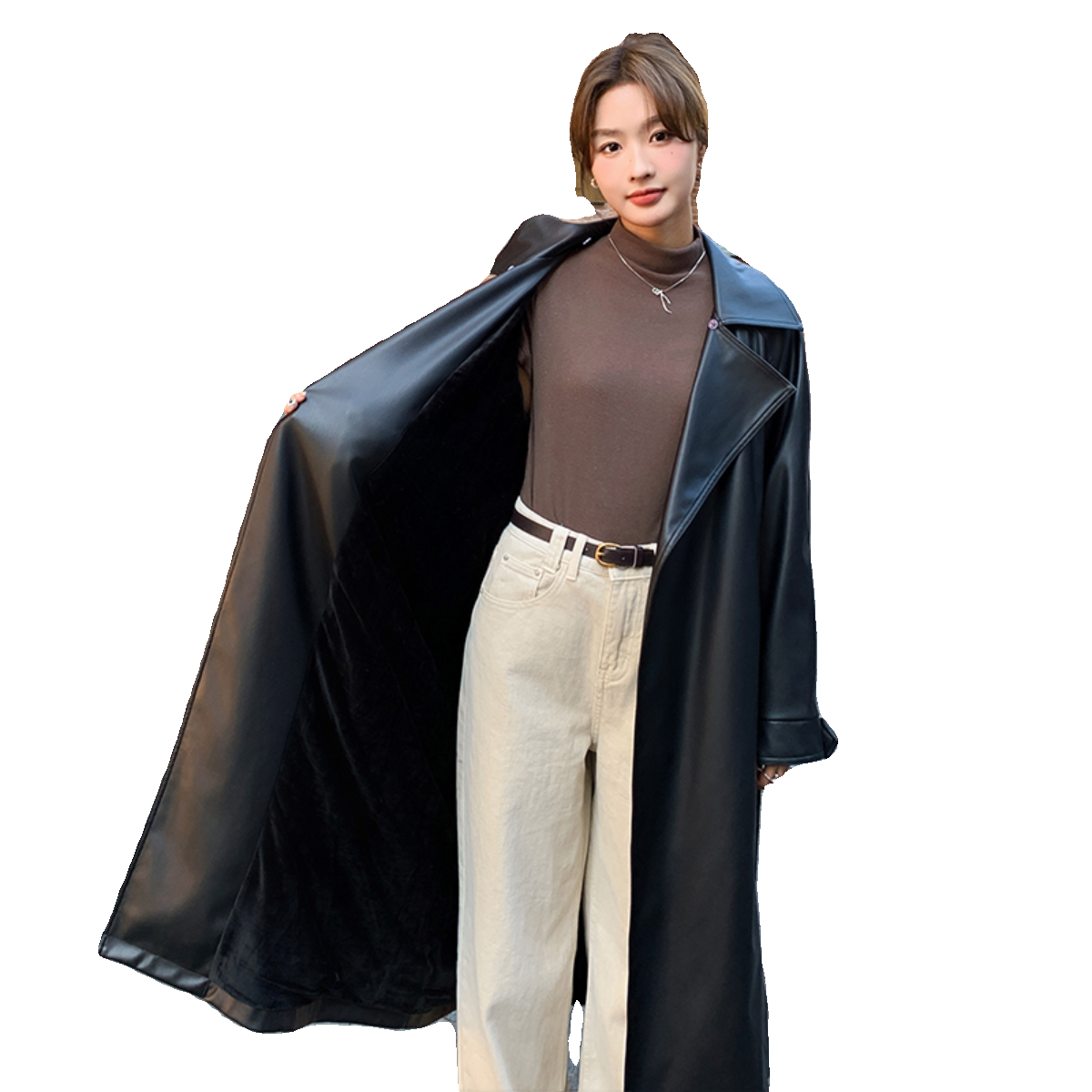 气质高仿皮大衣1352P175K268 加绒皮风衣外套韩版 现货冬装 爆款
