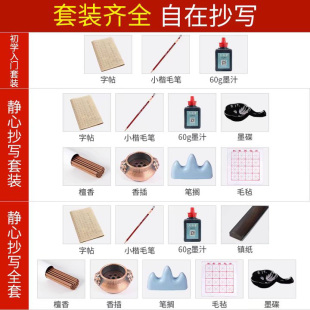 得力毛笔初学者书法套装 文房四宝兼毫毛笔三年级毛笔练字小学生入门级专用毛笔水写布书写纸国画笔墨纸砚书