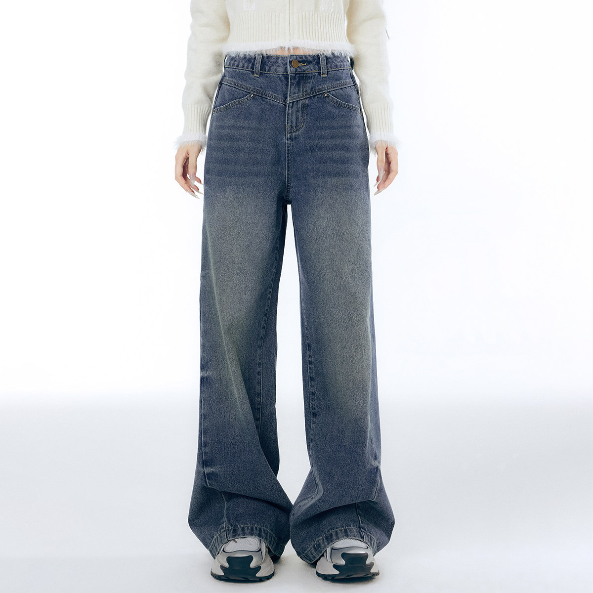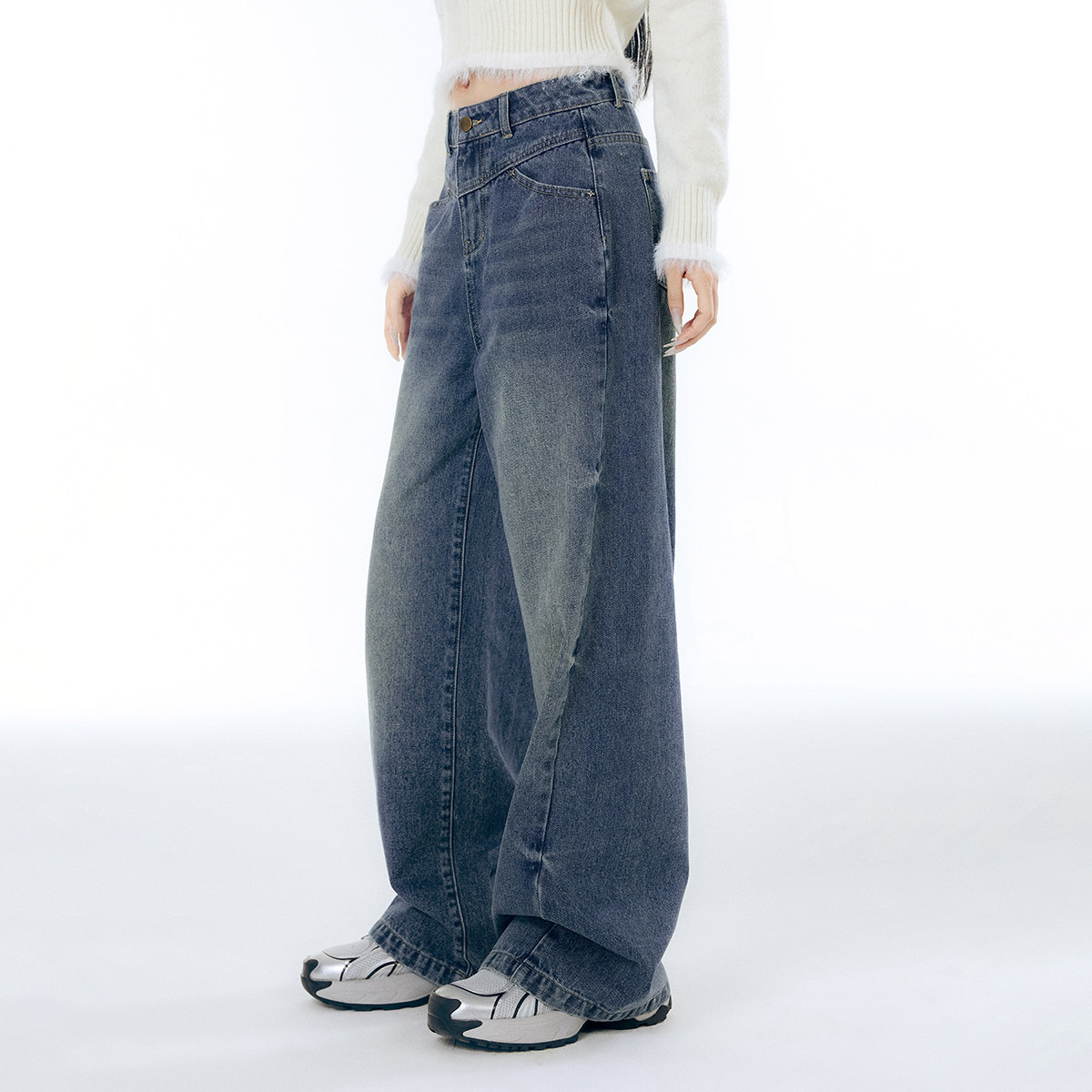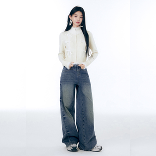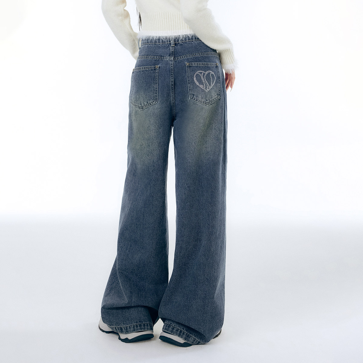 拖地长裤 爱心烫钻宽松显瘦阔腿牛仔裤 新款 女 CRAWFISH2024冬季