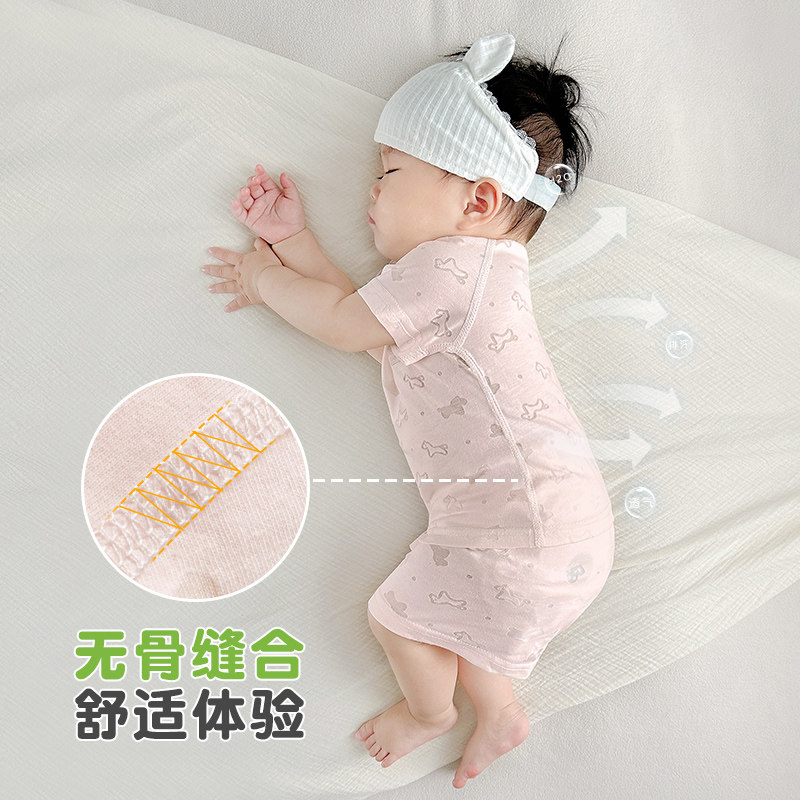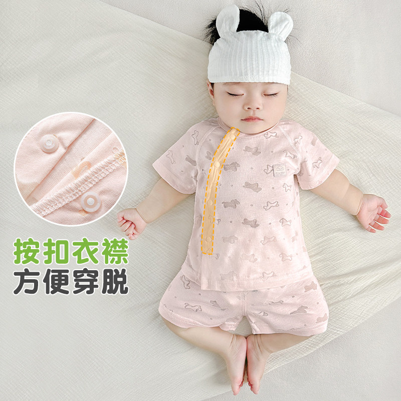 开裆幼儿分体外出宝宝夏装 婴儿夏季 衣服男童女童短袖 儿童薄款 套装