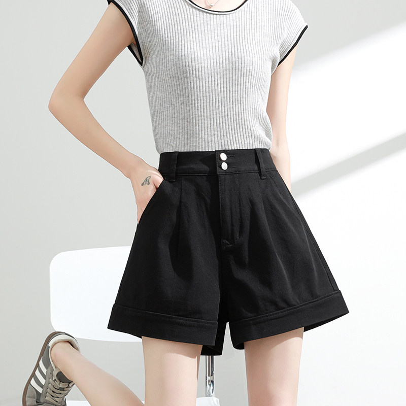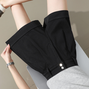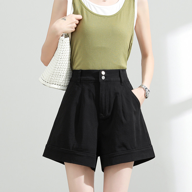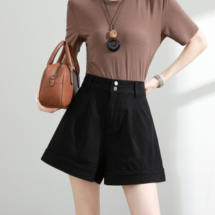 高腰显瘦黑色a字阔腿热裤 薄款 潮 女夏季 四面弹莱赛尔天丝牛仔短裤