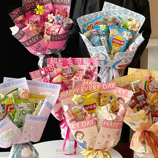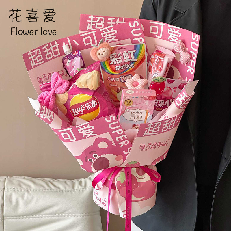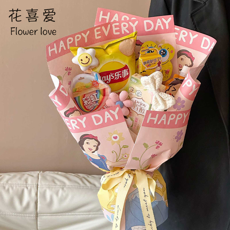 花喜爱六一儿童节花束包装 纸卡通零食包花纸送宝贝零食花束花店