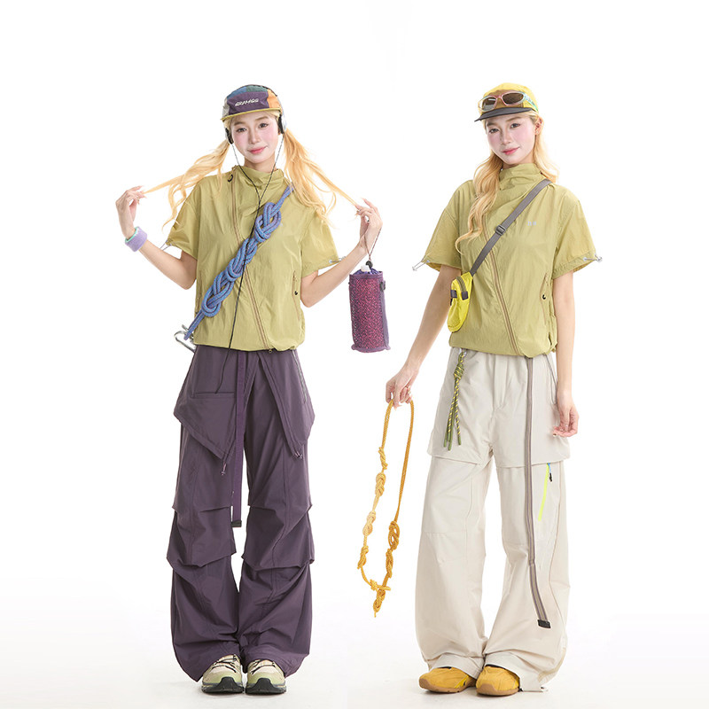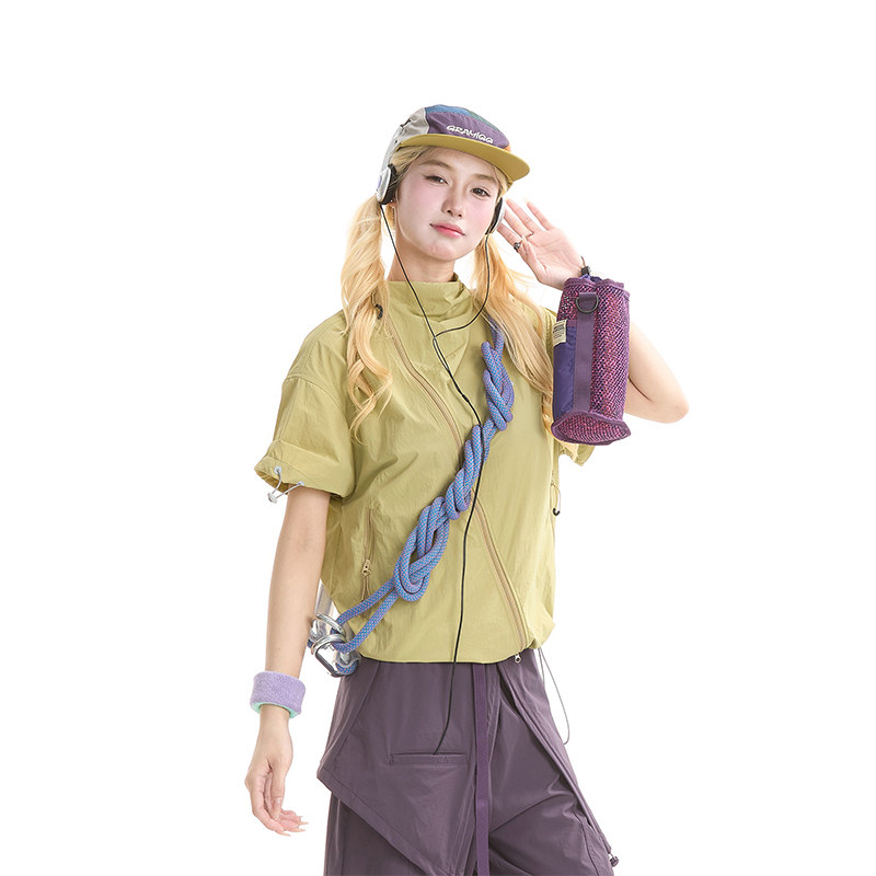 女户外山系轻薄速干工装 衬衫 上衣 机能风斜拉链短袖 NERESUM美式