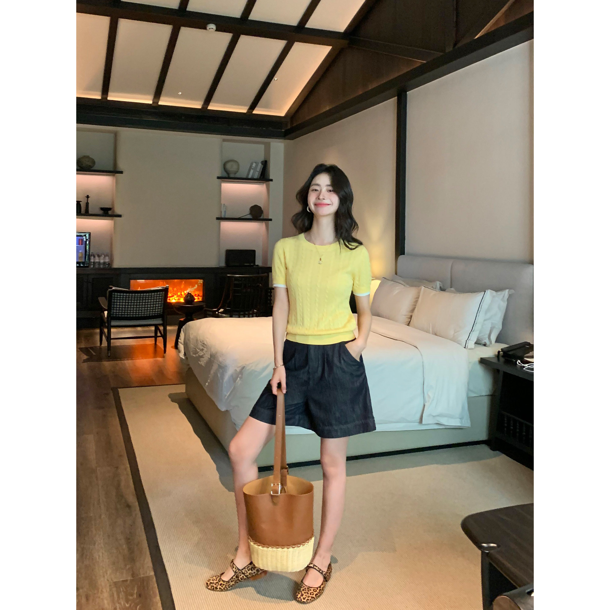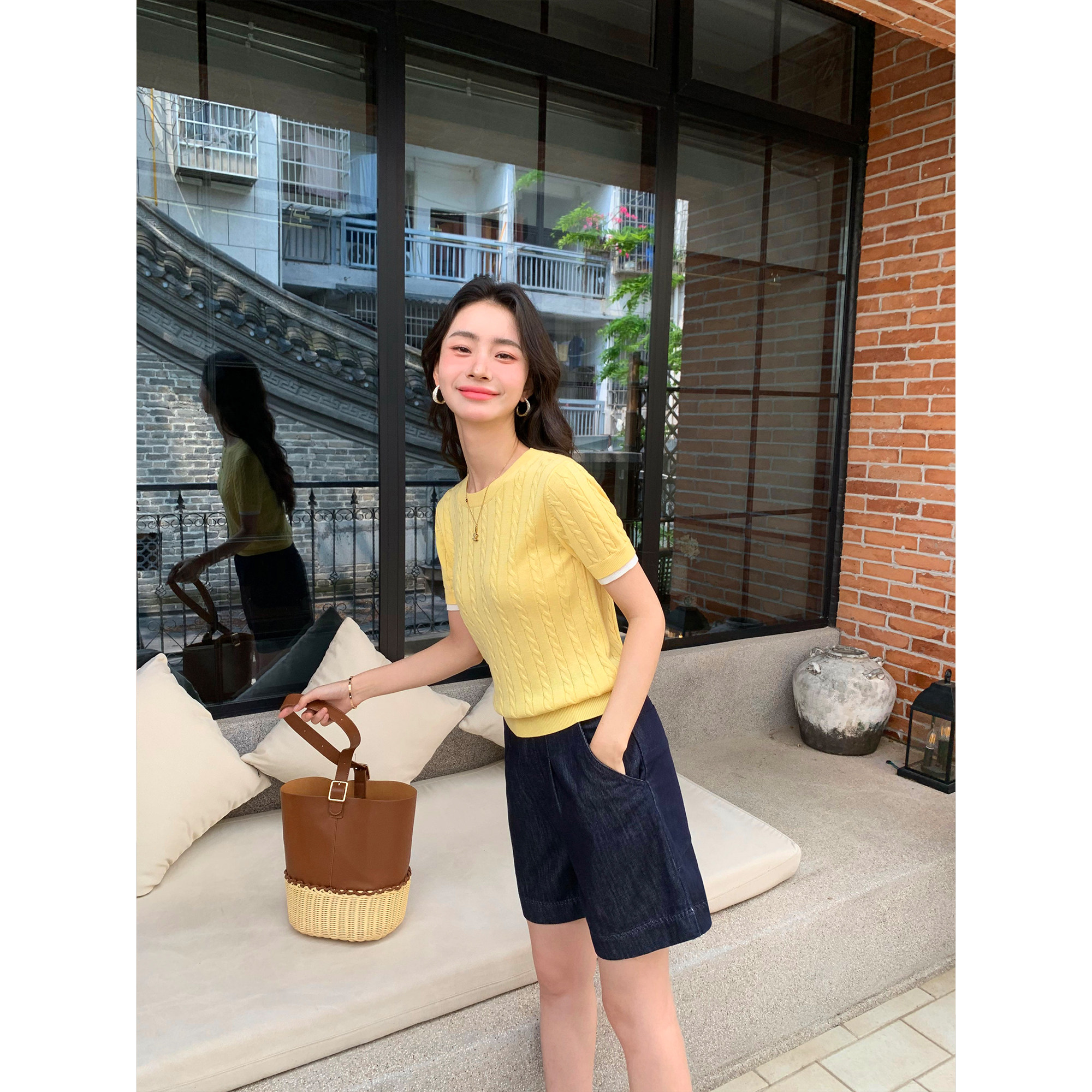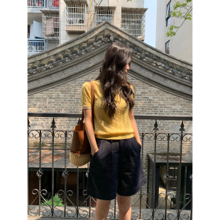 高腰五分裤 pusumede原色牛仔短裤 百搭休闲裤 a字热裤 女宽松阔腿裤