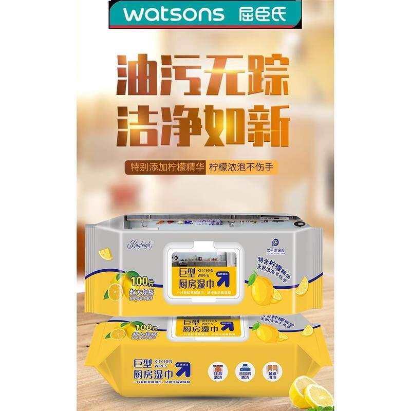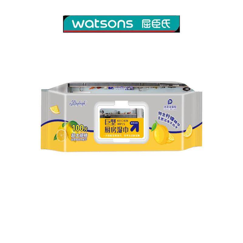 贝利巨型厨房湿巾 每包100抽厨房清洁去油污一次性湿巾 3包