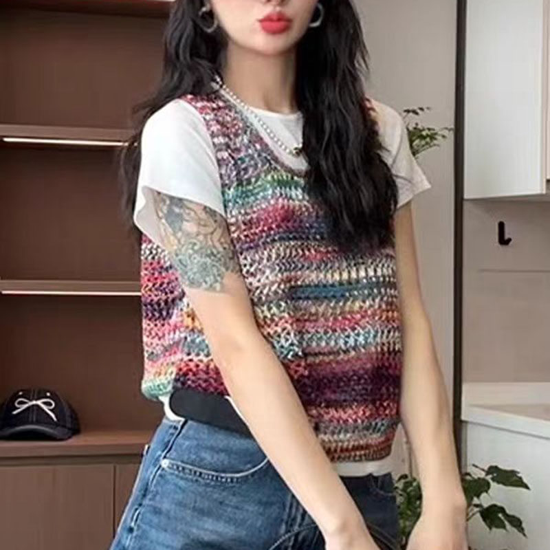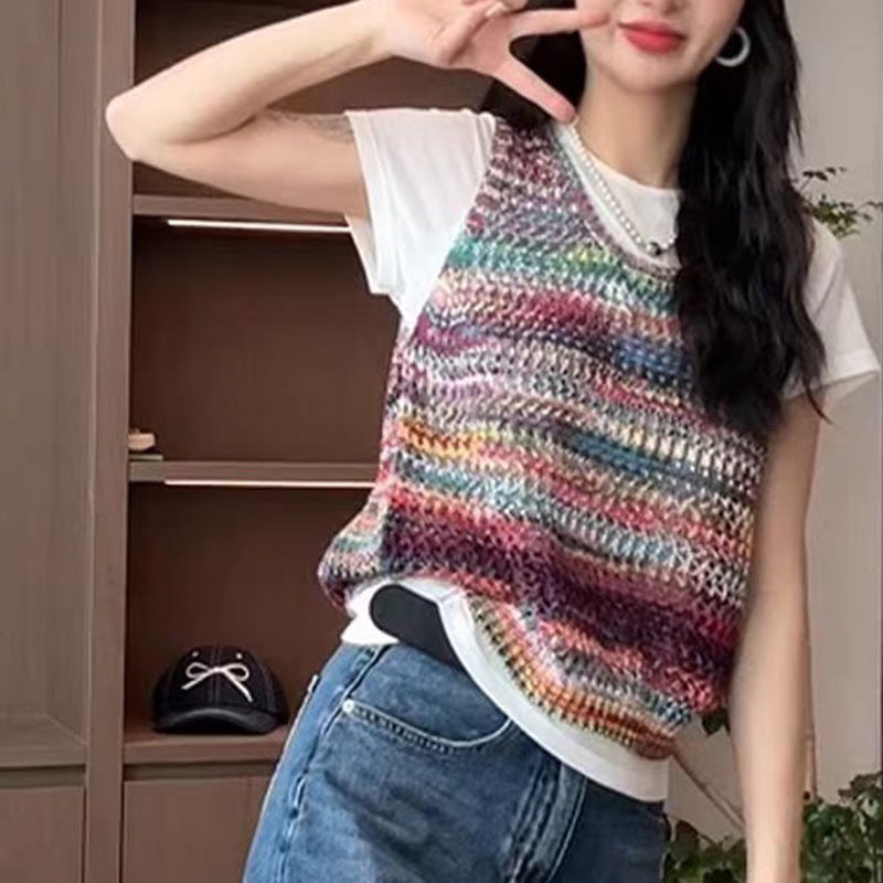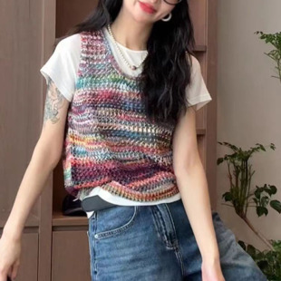 韩系复古彩色镂空背心无袖 设计感小众减龄百搭 针织马甲女春夏新款