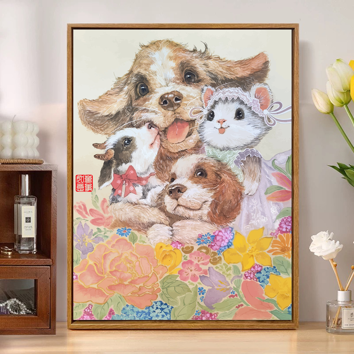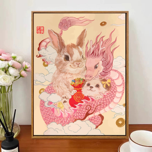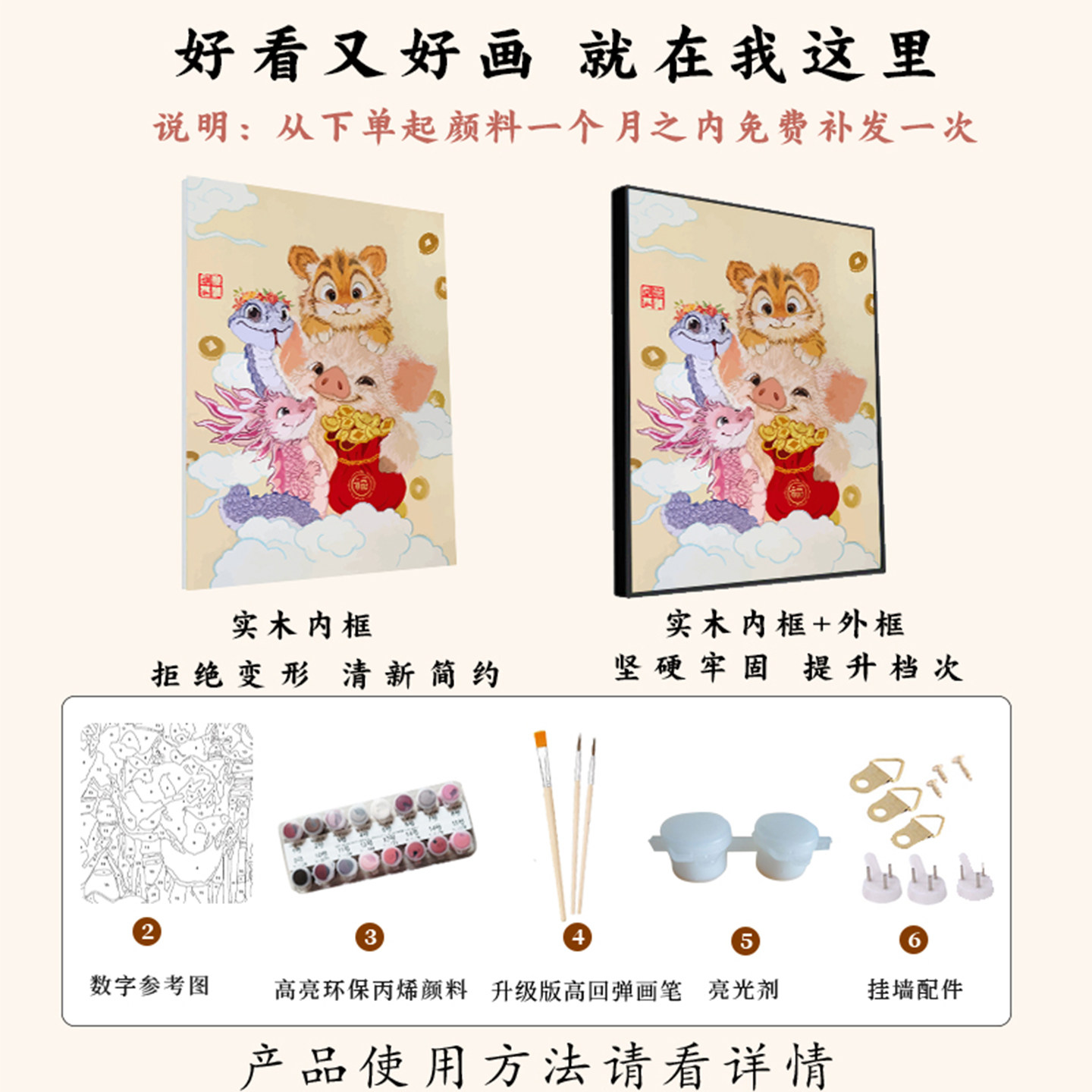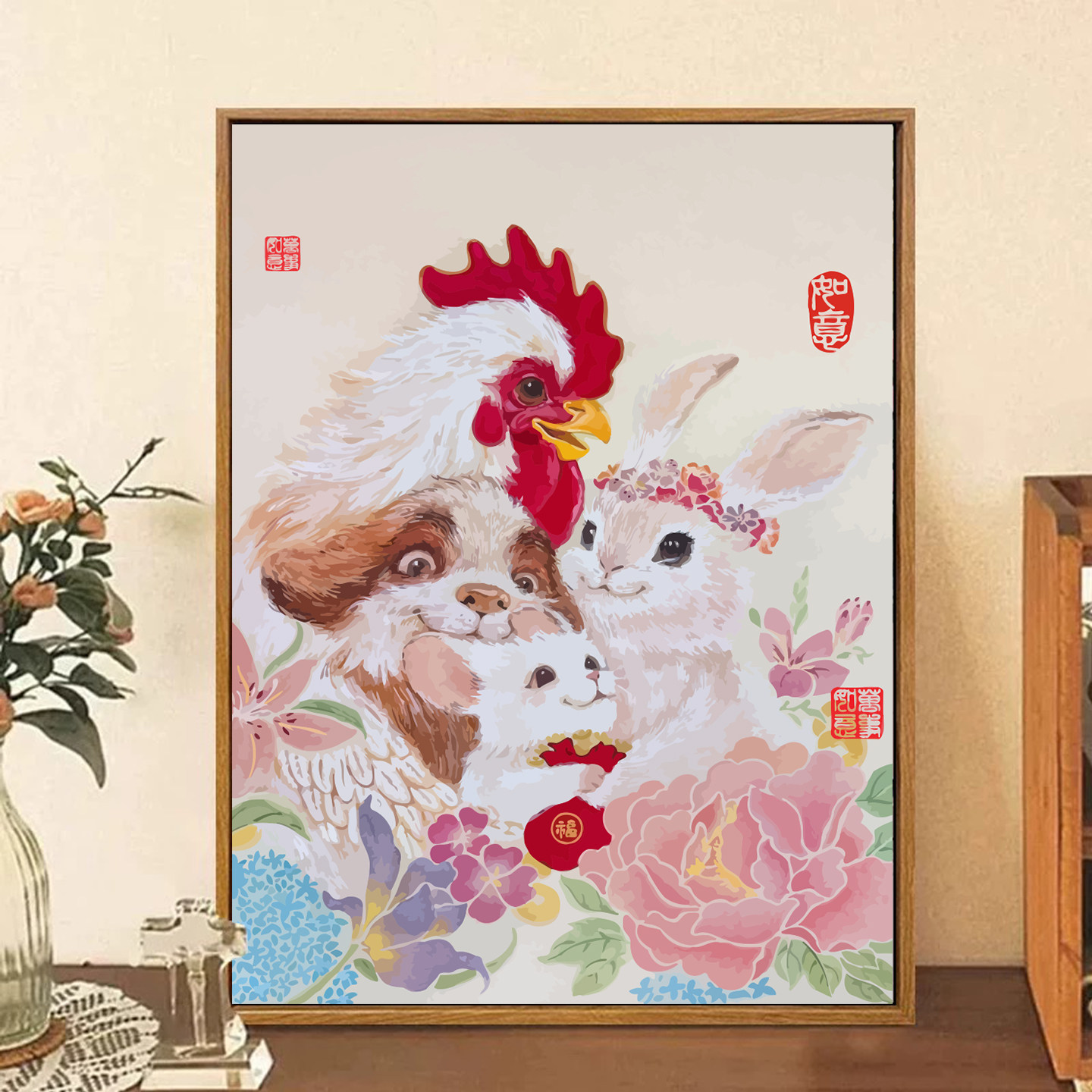 卡通生肖全家福diy数字油画手绘丙烯填充填色定制十二生肖装 饰画