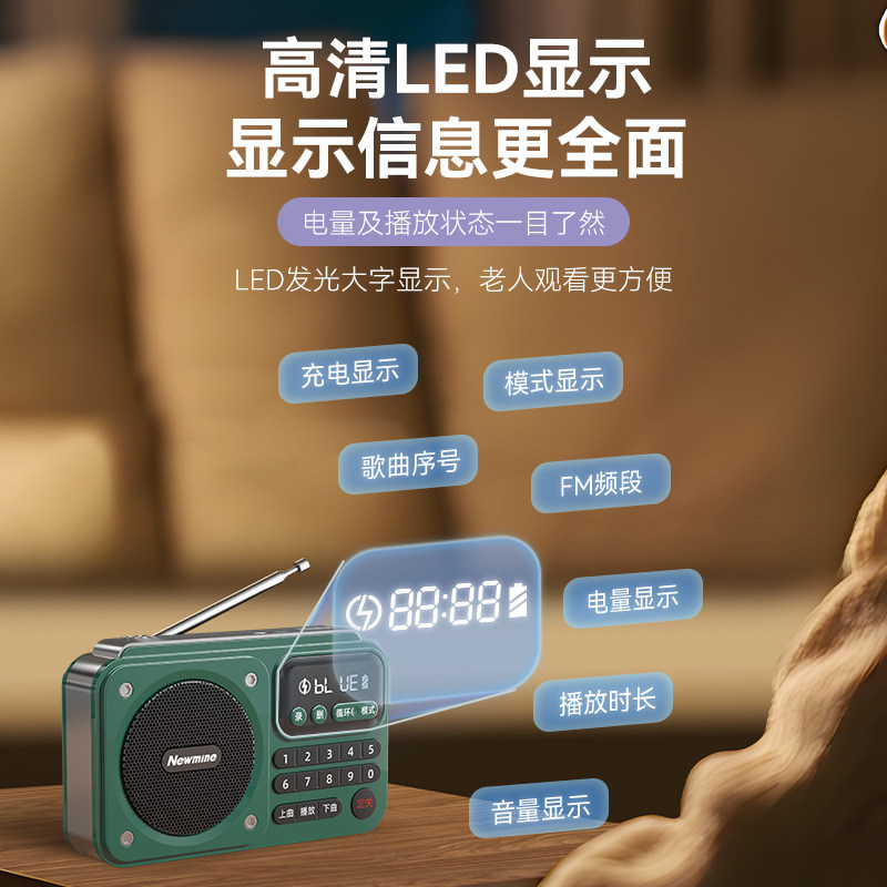 2025新款 插卡蓝牙音响 纽曼收音机老年人专用小型随身听智能充电款