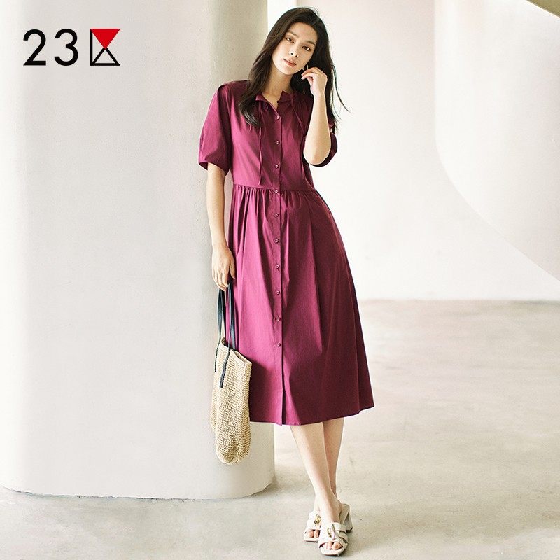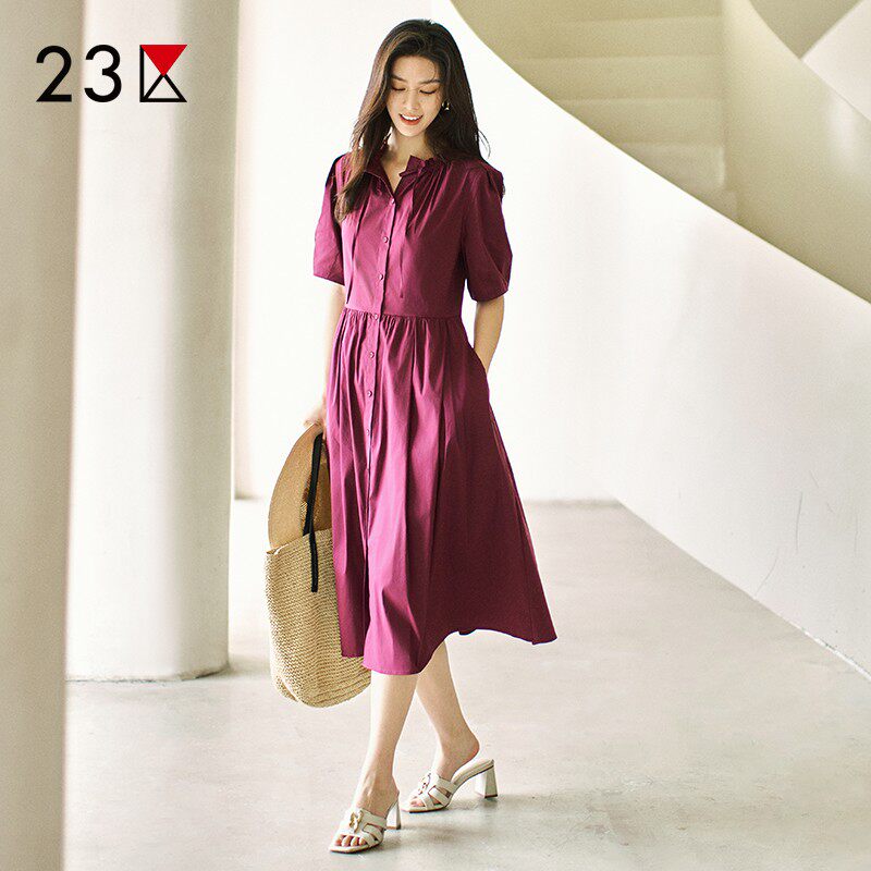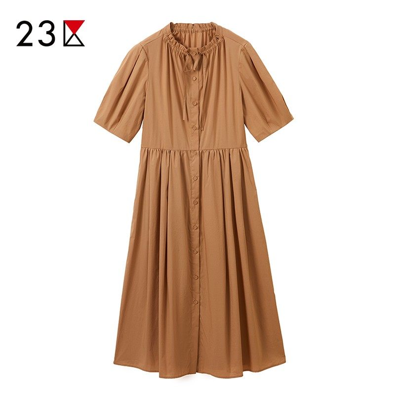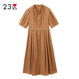 连衣裙连身裙商场同款 23区日系夏季 通勤职业OL棉混纺立领拼接短袖