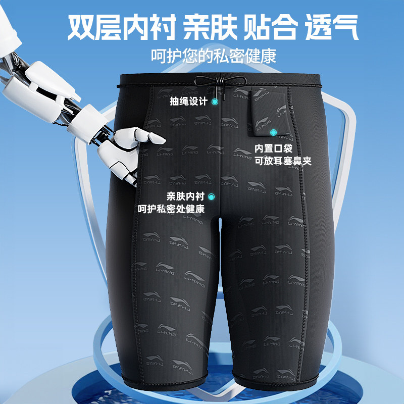 防尴尬温泉沙滩裤 2025新款 成人泳衣泳帽泳镜三件套 男士 李宁游泳裤