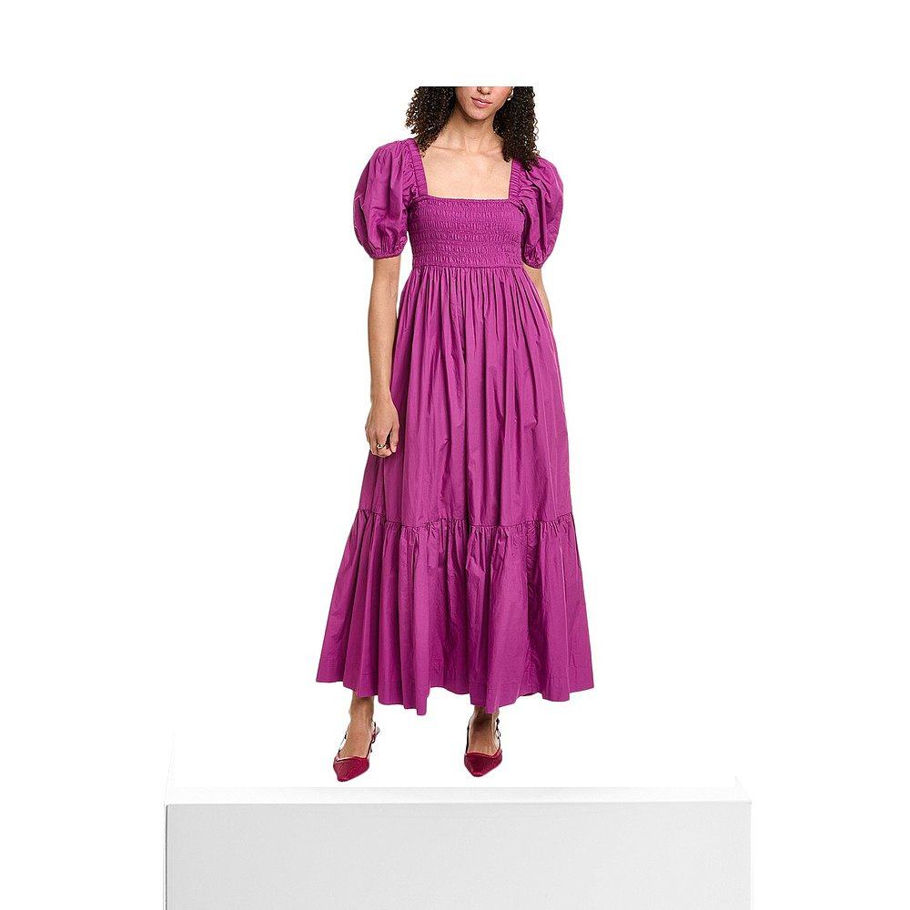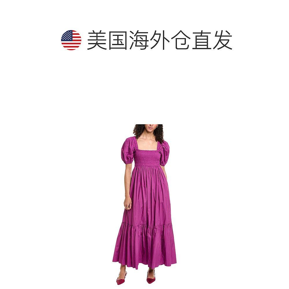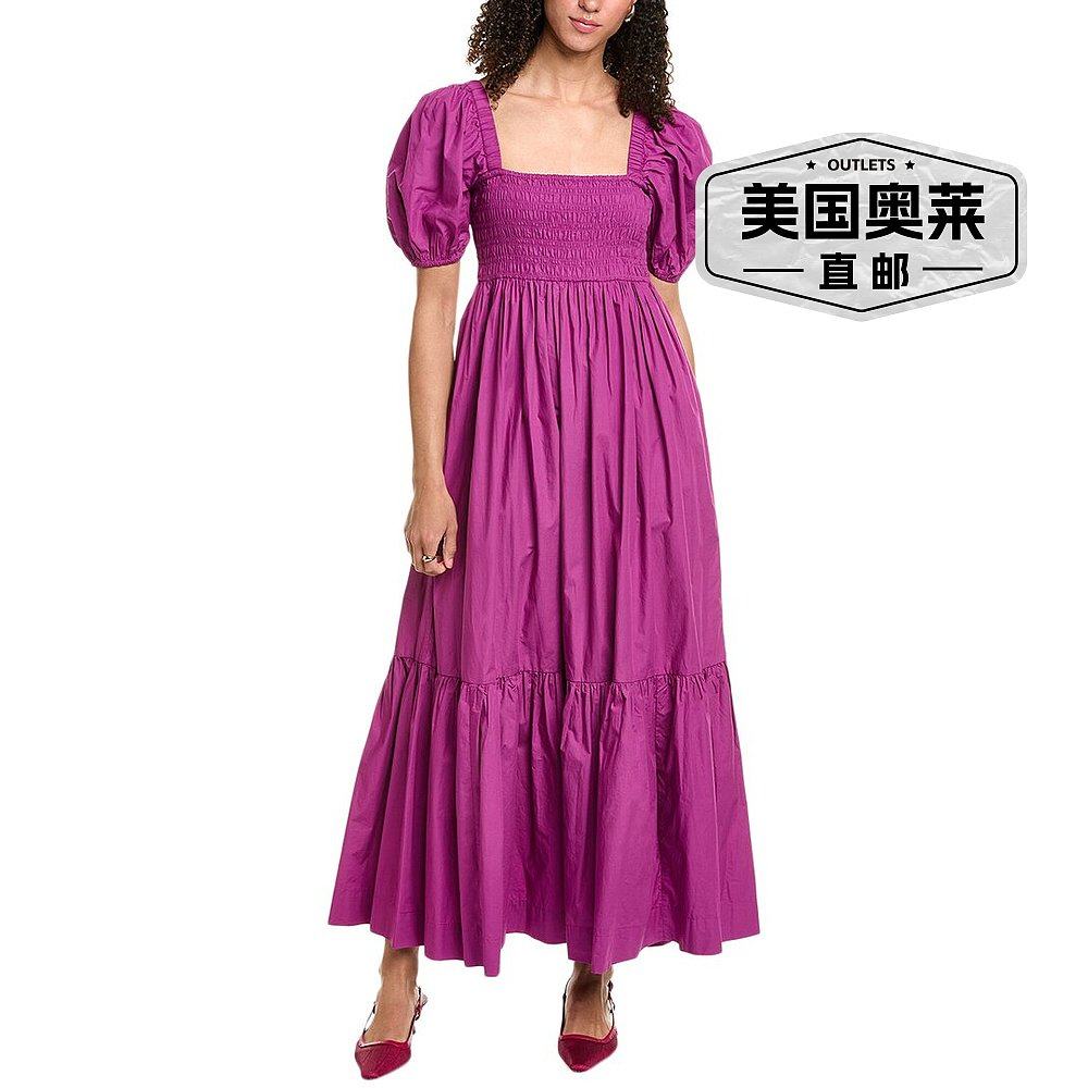 直发新款 自营 美国奥莱 紫色 连衣裙 ganni甘尼府绸烟熏长裙