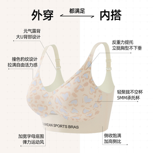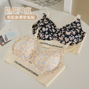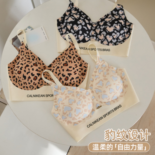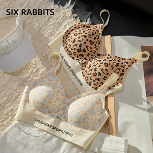 六只兔子运动风内衣女小胸聚拢收副乳软支撑加宽字母底围豹纹文胸