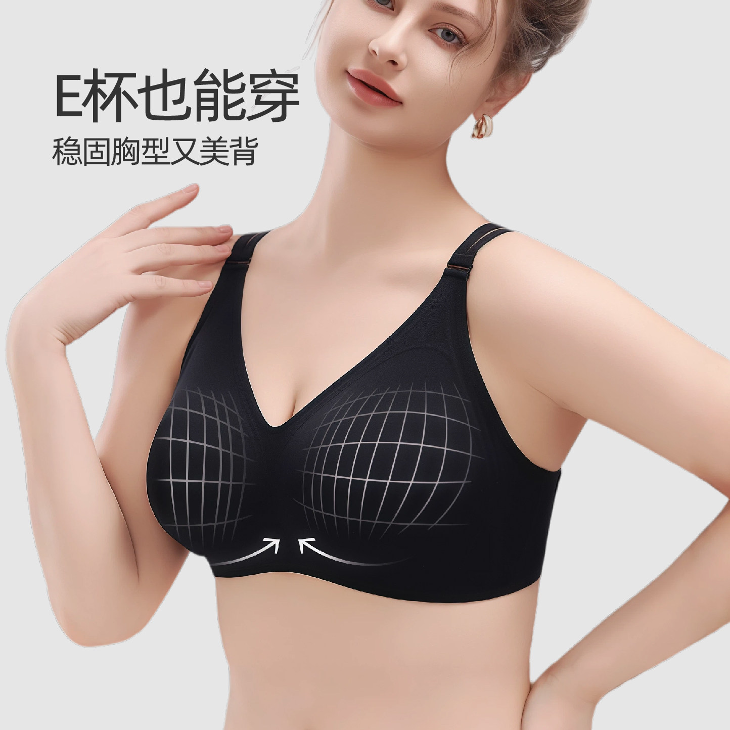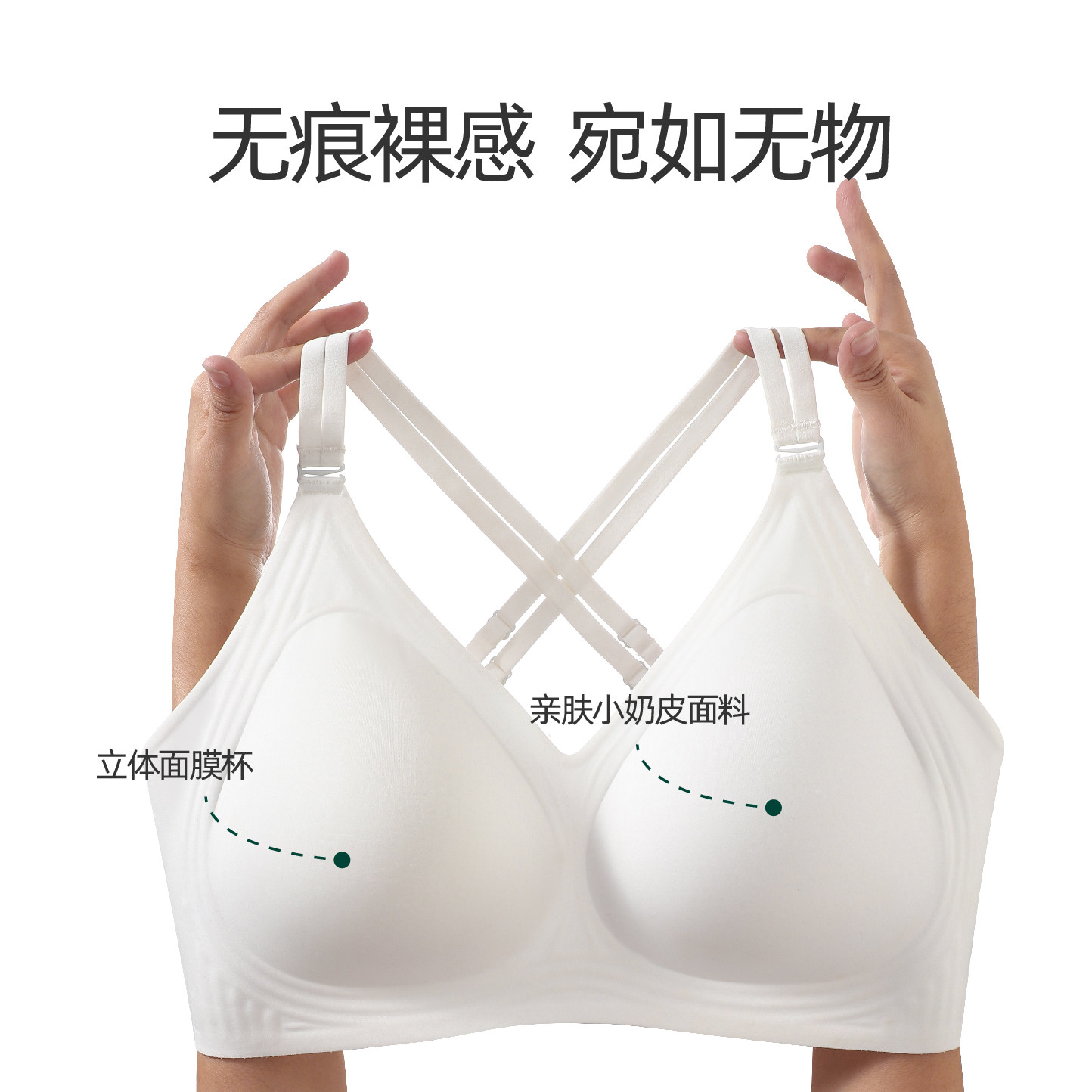 尚比妮大码 大胸显小聚拢无痕隐形交叉肩带美背内衣bra 文胸女薄款