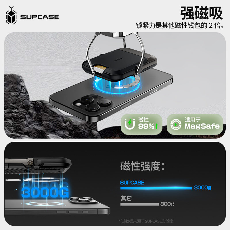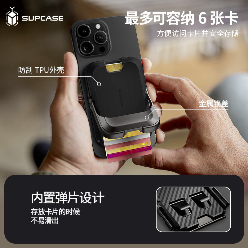 SUPCASE 直播迷你稳固卡片套钱包 手机强磁吸折叠金属支架卡包收纳盒magsafe无线多功能支撑架子懒人桌面立式