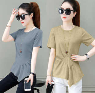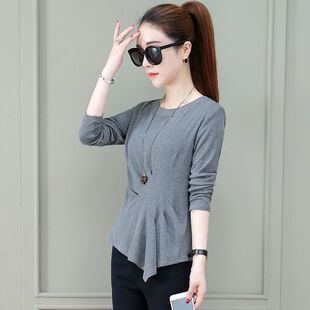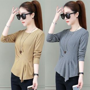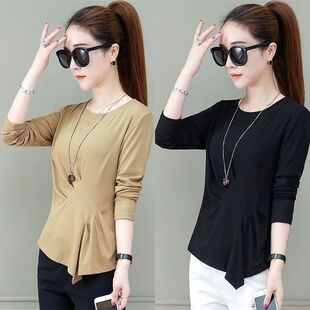 不规则t恤女春夏秋冬百搭长袖 洋气减龄上衣潮T 收腰显瘦褶皱打底衫