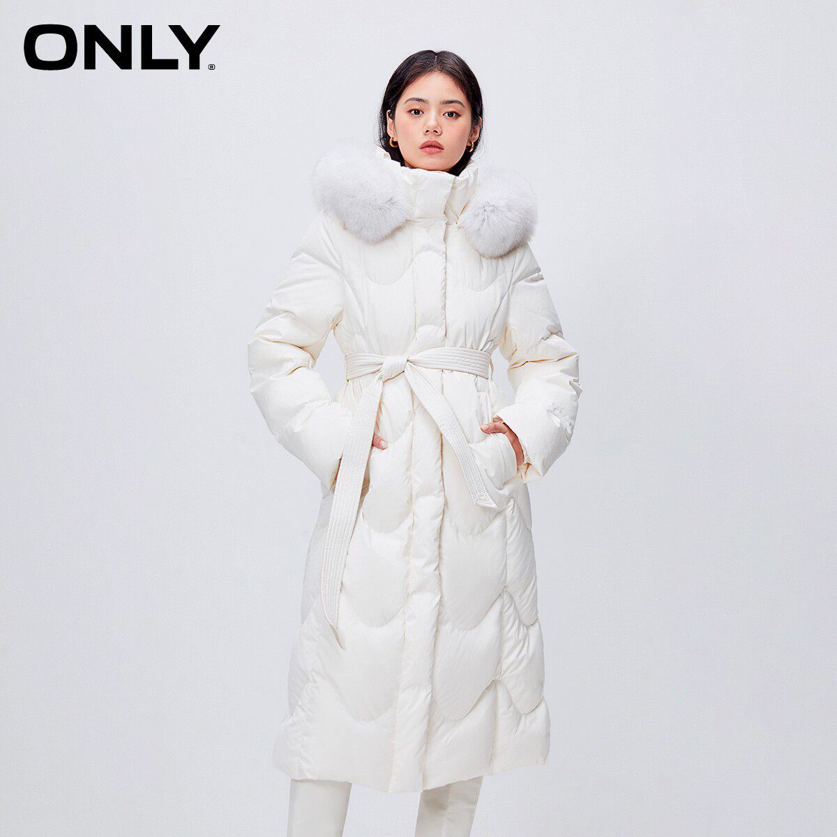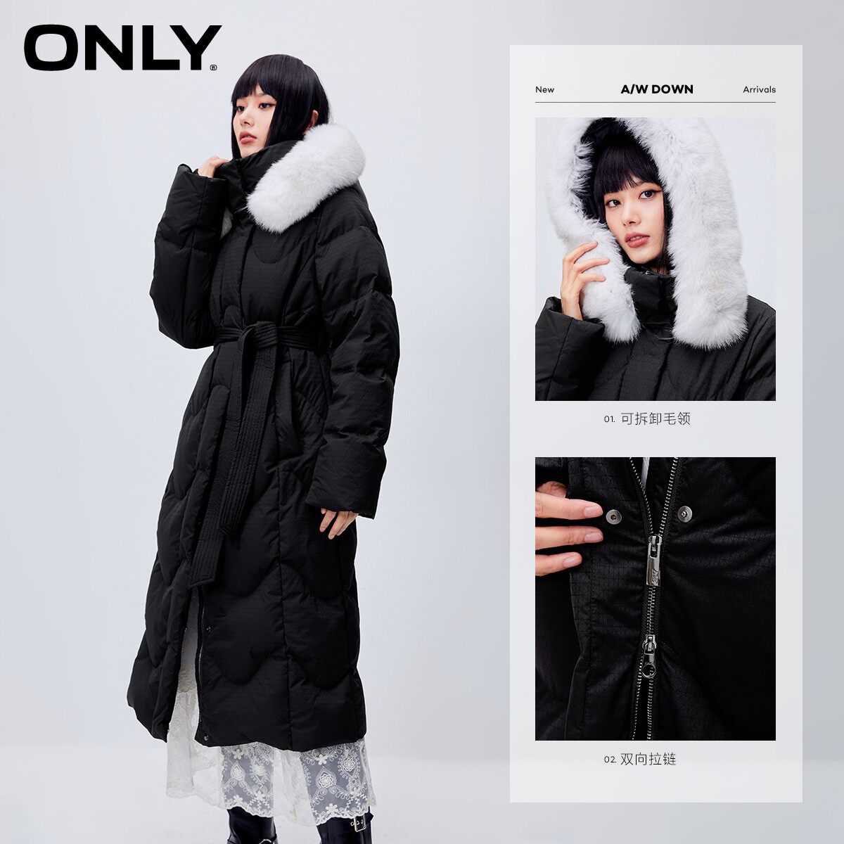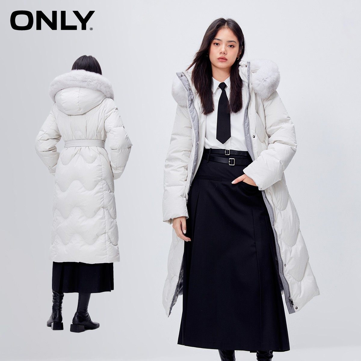 保暖直筒连帽长款 新款 ONLY奥莱冬季 羽绒服女 90白鹅绒