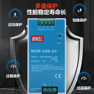 开关电源220转12V24V变压器HDR EDR明伟NDR 480W导轨式 240 120