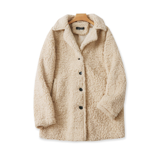 纽扣大衣休闲女绒外套百搭上衣10184 长袖 翻领羊羔毛外套 秋冬新款