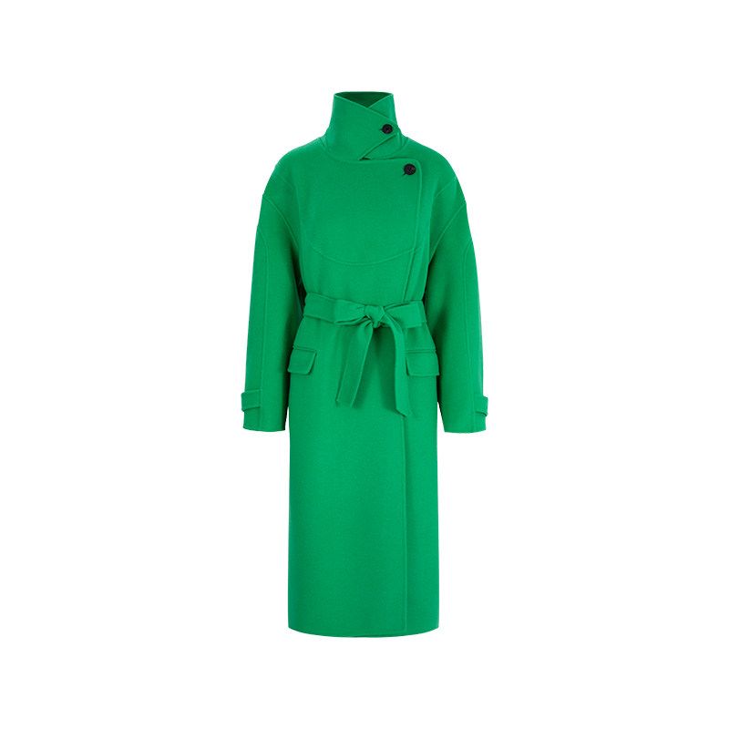 立领风衣外套 配腰带夹棉秋冬毛呢长款 PMET 多形态翻领毛呢大衣