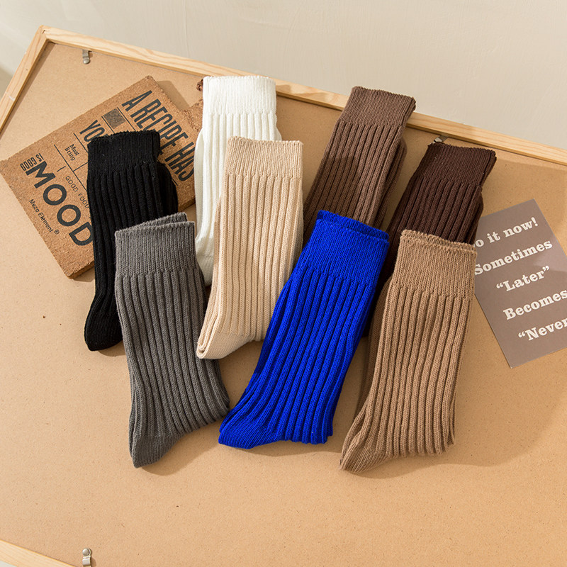 双针纯色日系粗线长袜子女春夏中筒袜潮流纯棉堆堆袜男长筒情侣袜