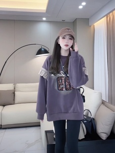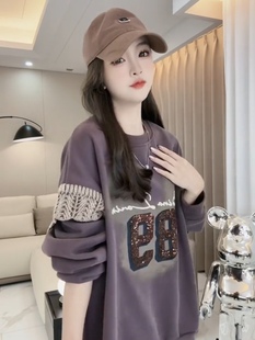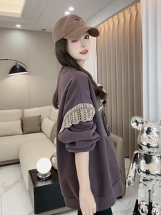 中长款 米奇印花亮片拼接蕾丝袖 澳粒绒加绒加厚卫衣女韩版 秋冬新品