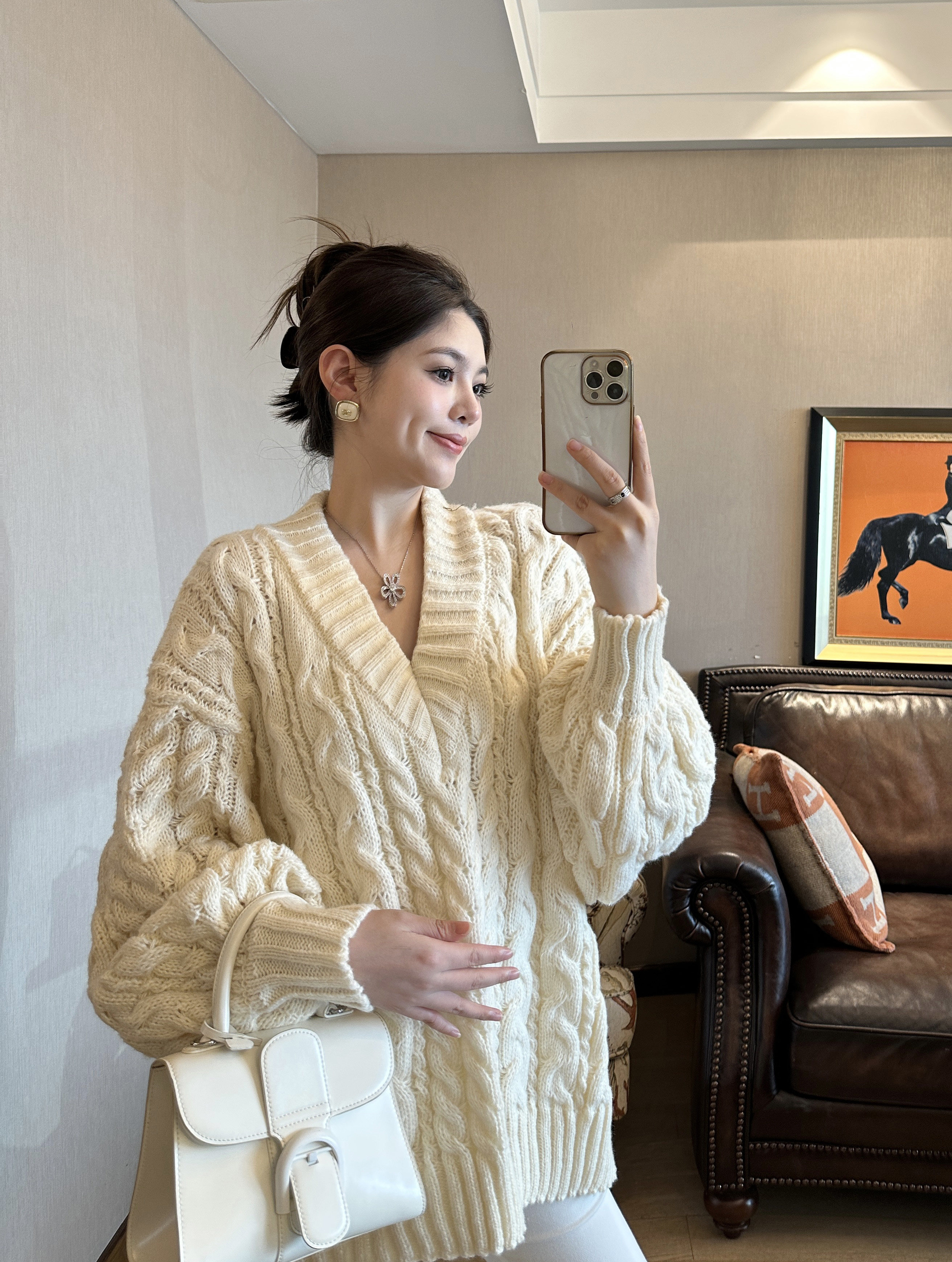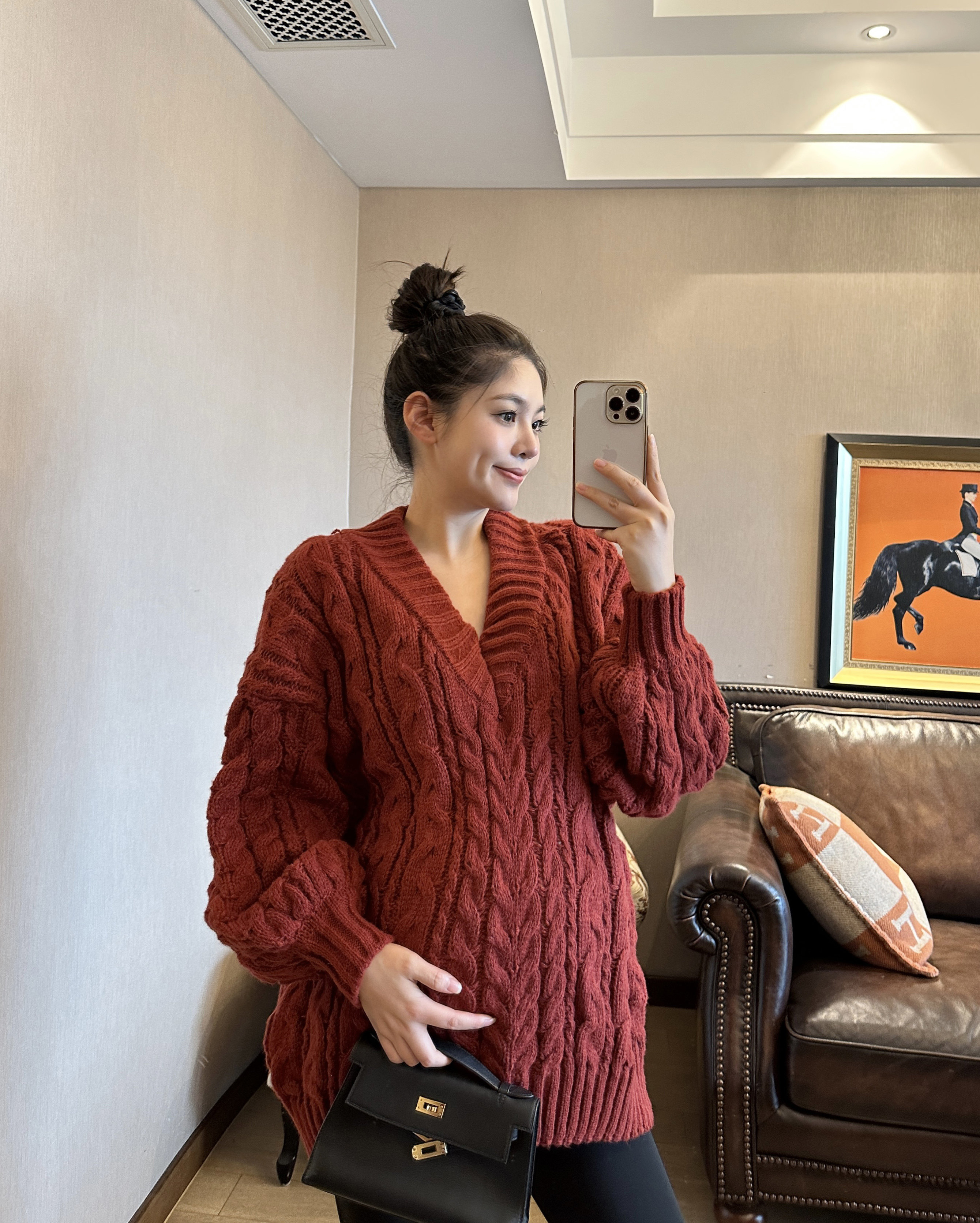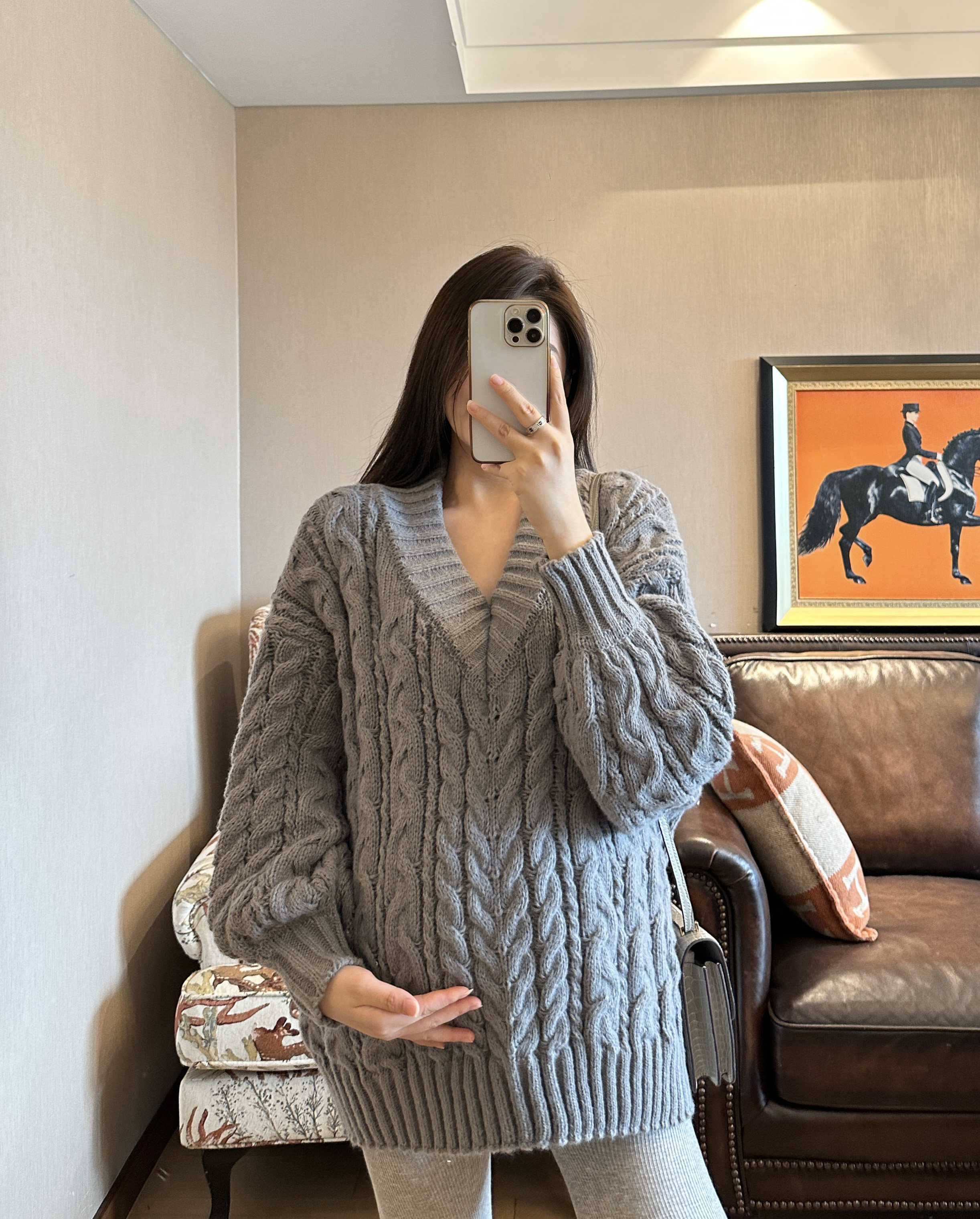 上衣宽松保暖大码 PEIPEI佩佩孕妇装 毛衣冬季 大V领法式 外穿 新款