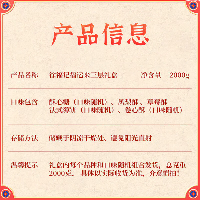 徐福记三层礼盒2000g 饼干糕点休闲零食新年礼物年货节日送礼团购