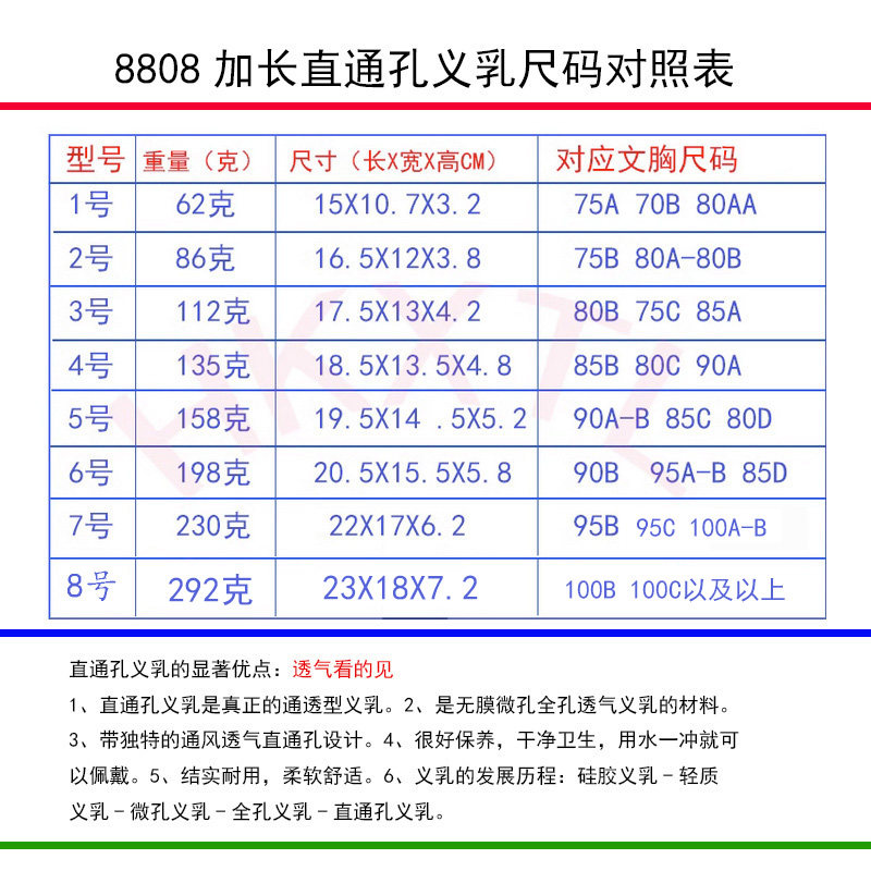 HKXTL直通孔义乳 加长螺旋形补充腋下微孔全孔无膜透气假胸乳8808