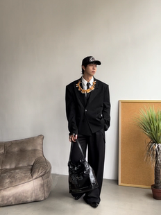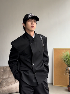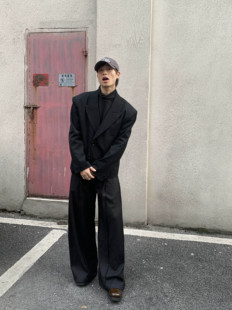 夹克外套 西装 ICE UP高端混纺羊毛两穿宽松垫肩vibe黑色休闲短款