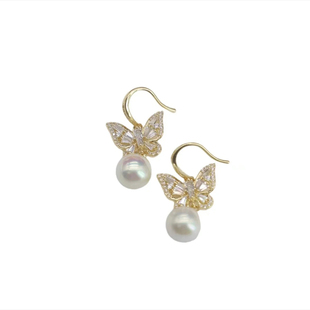 轻奢高级感满钻蝴蝶珍珠耳环2023年新款 潮气质百搭精致耳饰女 爆款