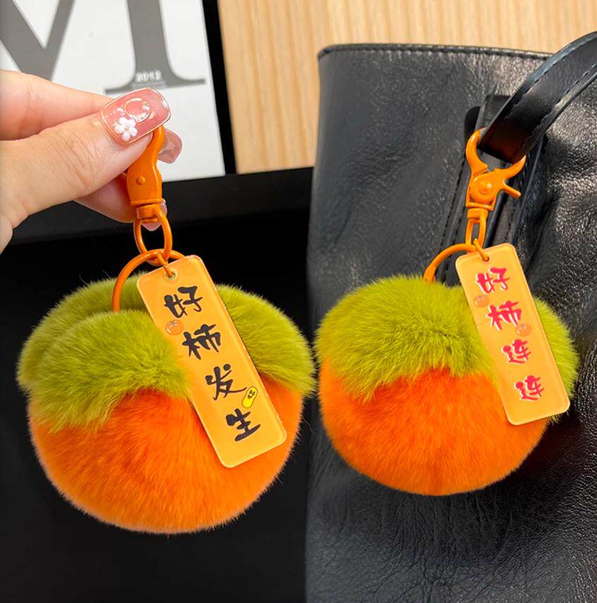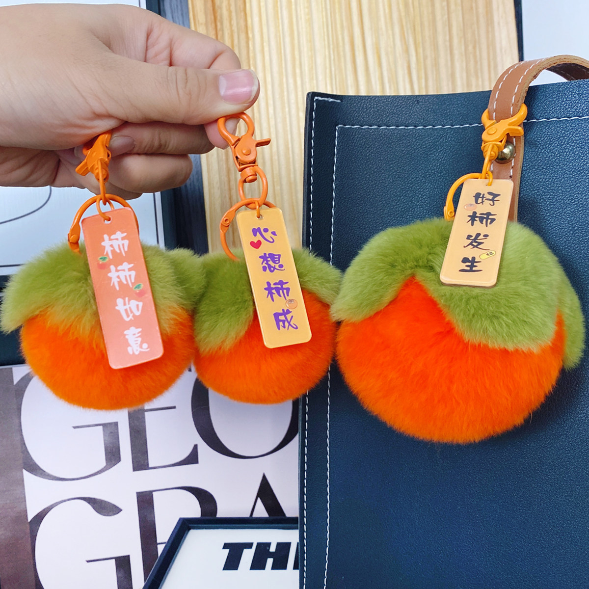 真獭兔毛小柿子毛绒玩具手机挂饰车钥匙扣玩偶柿柿如意书包包挂件