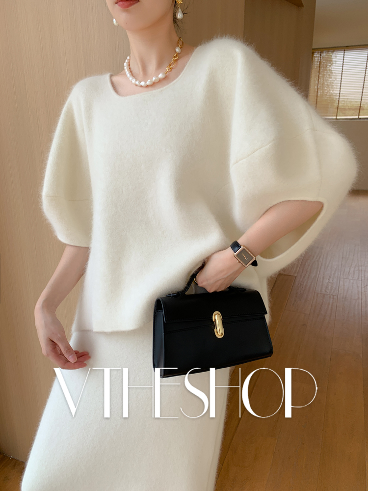 针织上衣2025 浣熊毛衣女宽松慵懒软糯洋气泡泡袖 短袖 手套灯笼袖
