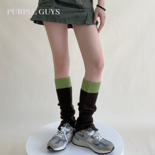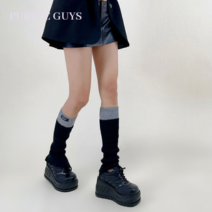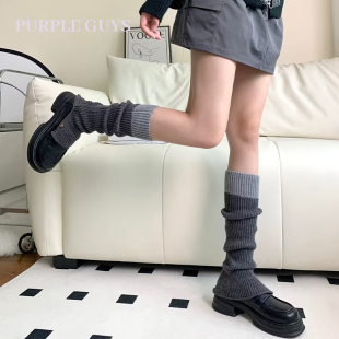 纽扣拼色堆堆袜套女秋冬搭配小皮鞋 日系y2k毛线针织jk黑灰色腿套