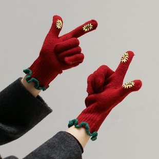 德绒保暖手套女冬季 滑雪手套内胆 可触屏户外开车防寒春秋单层薄款