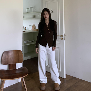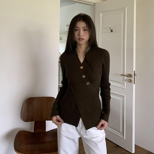 打底衫 设计感收腰气质短款 上衣 女秋季 橘子树在哪儿韩系开叉针织衫